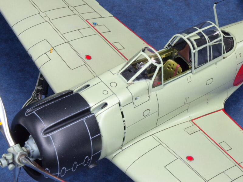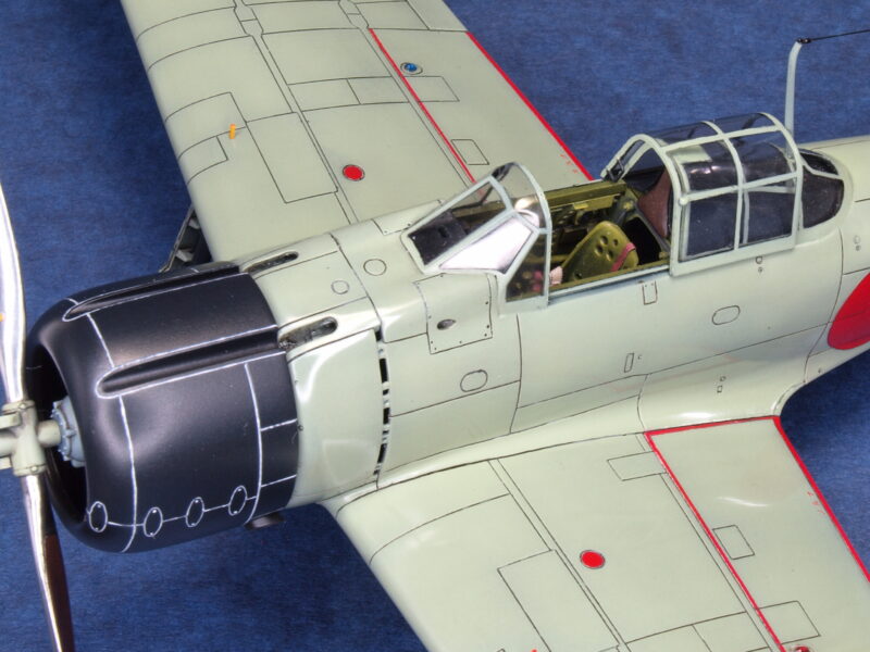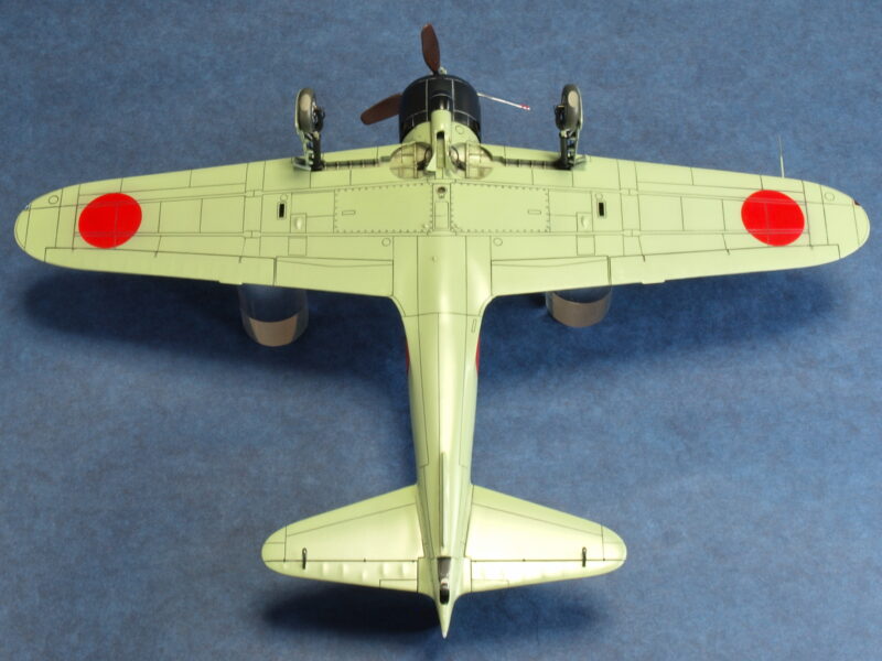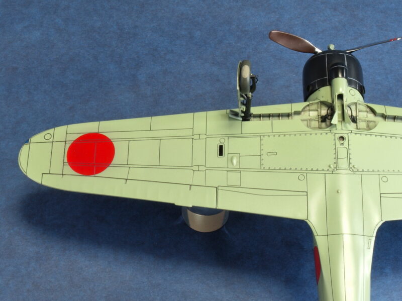 三菱製の零戦が、着陸駐機時に外部に面する部位を全て外面扱いとし、主脚カバーの内面側や主脚格納庫内も機体色と同色で塗装していたことから、十二試艦戦(A6M1)も同様の解釈がされたとして塗装仕上げを行っています。