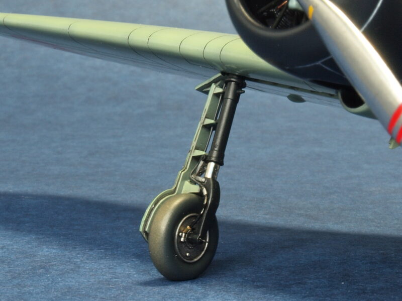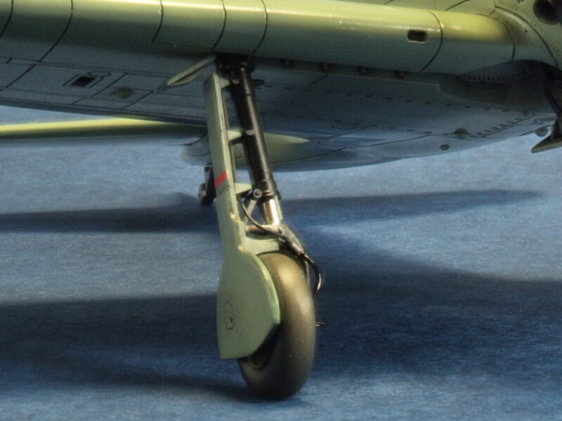 主脚柱にディテールアップしたブレーキ線を追加しています。また、キットでは省略されている右主翼前縁部の付け根付近に設置されている、操縦室内への空気取入れ口を凹モールドにて再現しています。形状は、試作一号機、試作二号に共通で、量産機の初期型に見られる楕円形の開口。