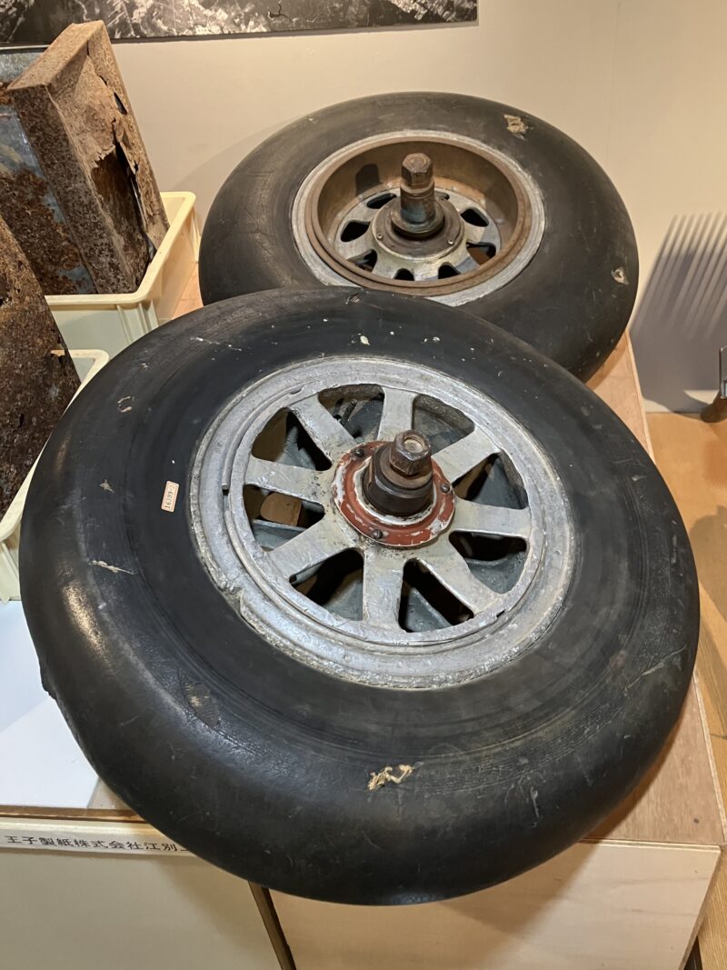 そしてこれが、キ106戦闘機の主輪。タイヤゴムの劣化も少なく原型を留めています。四式戦「疾風」の主輪より直径が一回り大きい。