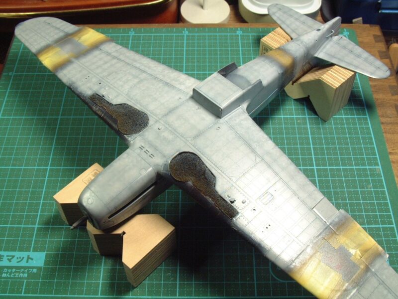 前回の小物類の塗装仕上げ、リベット打ち作業、及び塗装工程の下地塗装まで完了しましたので、今回は、機体の基本塗装の工程についての解説です。